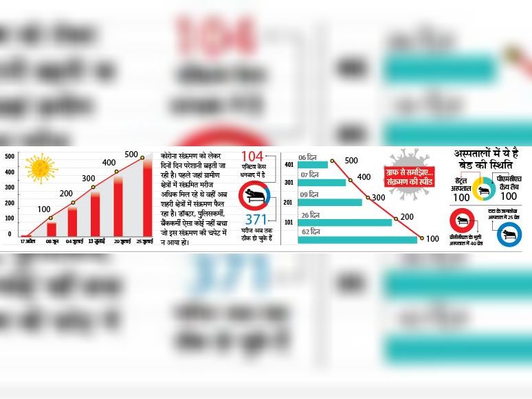 धनबाद जिले में कोरोना का संक्रमण तेजी से फैल रहा है। पिछले छह दिनों के आंकड़े इसकी भयावहता को दर्शा रहे हैं। क्योंकि इन छह दिनों में धनबाद में 154 मरीज मिले हैं, यानी औसतन 25 मरीज रोजाना। पिछले दो दिनों से 26 मरीज मिल रहे हैं। वहीं 23 जुलाई को यह आंकड़ा 33 पहुंच गया था। जिले में अब तक 518 संक्रमित मरीज मिल चुके हैं। इनमें से 371 ठीक भी हो चुके हैं।