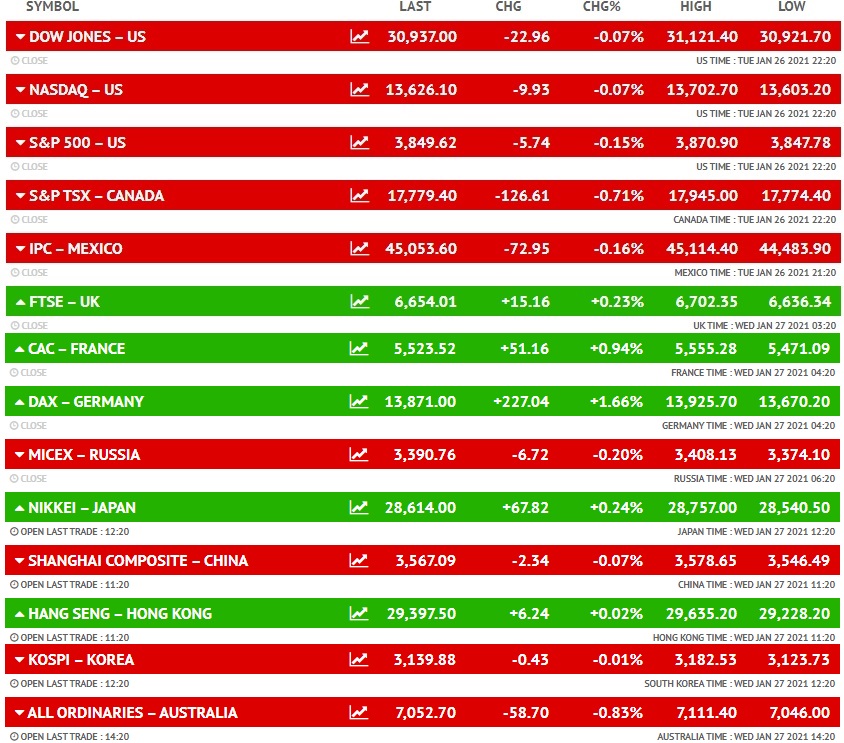 25 जनवरी को सेंसेक्स 531 अंकों की गिरावट के साथ 48,347.59 पर और निफ्टी 133 अंक नीचे 14,238.90 पर बंद हुआ था। एक्सचेंज डेटा के मुताबिक विदेशी संस्थागत निवेशकों (FII) ने शुद्ध 765.30 करोड़ रु. और घरेलू संस्थागत निवेशकों (DII) ने 387.76 करोड़ रु. के शेयर बेचे थे।