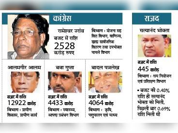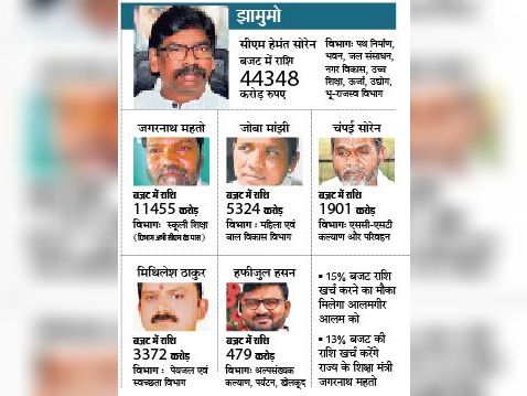 झारखंड विधानसभा में वित्त मंत्री डॉ रामेश्वर उरांव ने बजट का पिटारा खोला तो सबसे ज्यादा राशि अपने मुख्यमंत्री हेमंत सोरेन के विभागों को दी। बजट में विभाग को मिले पैसे के अनुसार मुख्यमंत्री के बाद आलमगीर आलम सबसे ताकतवर मंत्री हैं।